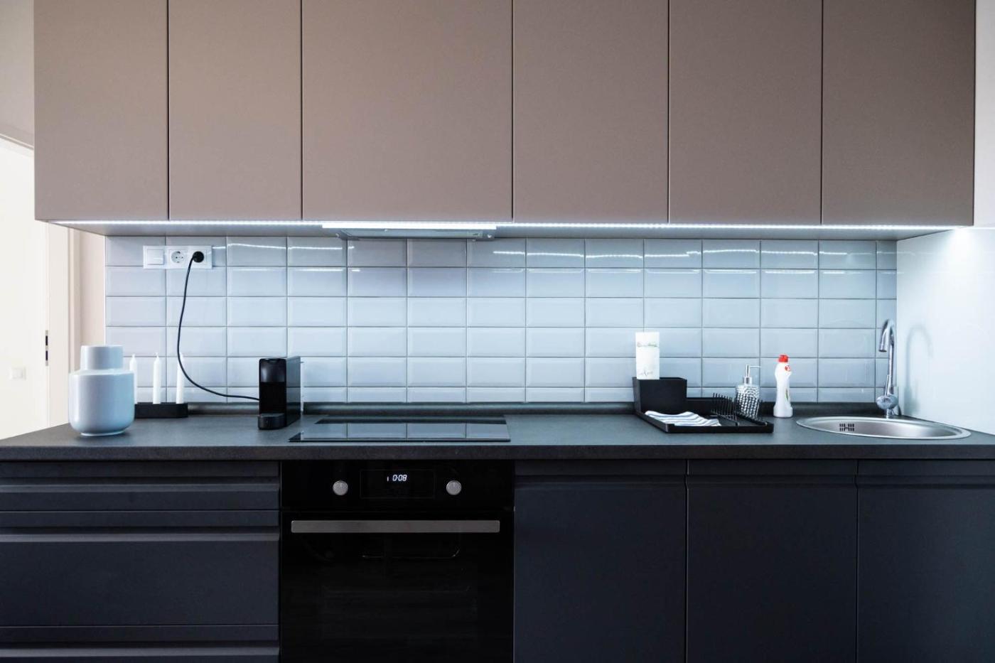 Two-Bedroom Apartment. This apartment features a sauna. This air-conditioned apartment comprises 1 living room, 2 separate bedrooms and 1 bathroom with a shower. In the fully equipped kitchen, guests will find a stovetop, a refrigerator, a dishwasher and kitchenware. The apartment provides a washing machine, a tea and coffee maker, a dining area, a flat-screen TV with cable channels, as well as garden views. The unit offers 4 beds.